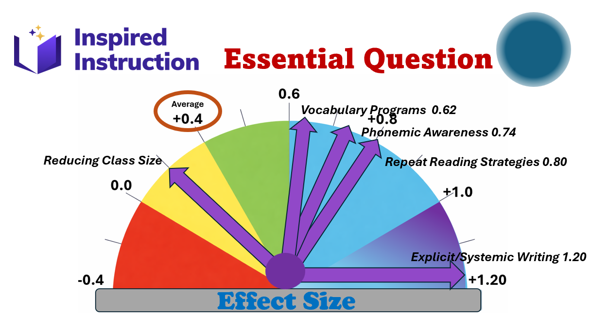 Basically, to shrink the literary gap, particularly in our secondary schools, we need to close the “Knowing vs. Doing Gap” about best practices in literacy instruction. Efforts to this end require leadership, learning, collaboration and time. We know from existing research that explicit vocabulary, writing and reading strategies have effect sizes of well above average of 0.40. (Hattie, J., Fisher, D., & Frey, N. (2023). Visible learning: The sequel. Corwin. Specifically, “Explicit and Systematic Writing Strategies” (planning, brainstorming, editing, peer-revising and goal-setting) has an effect size of 1.20. On the reading end, phonemic awareness has an effect size of 0.75 with Vocabulary Programs and Repeated Reading at 0.62 and 0.80 respectively. (Interestingly, Whole Language and Balanced Literacy approaches have a significantly lower Effect Size – 0.14)